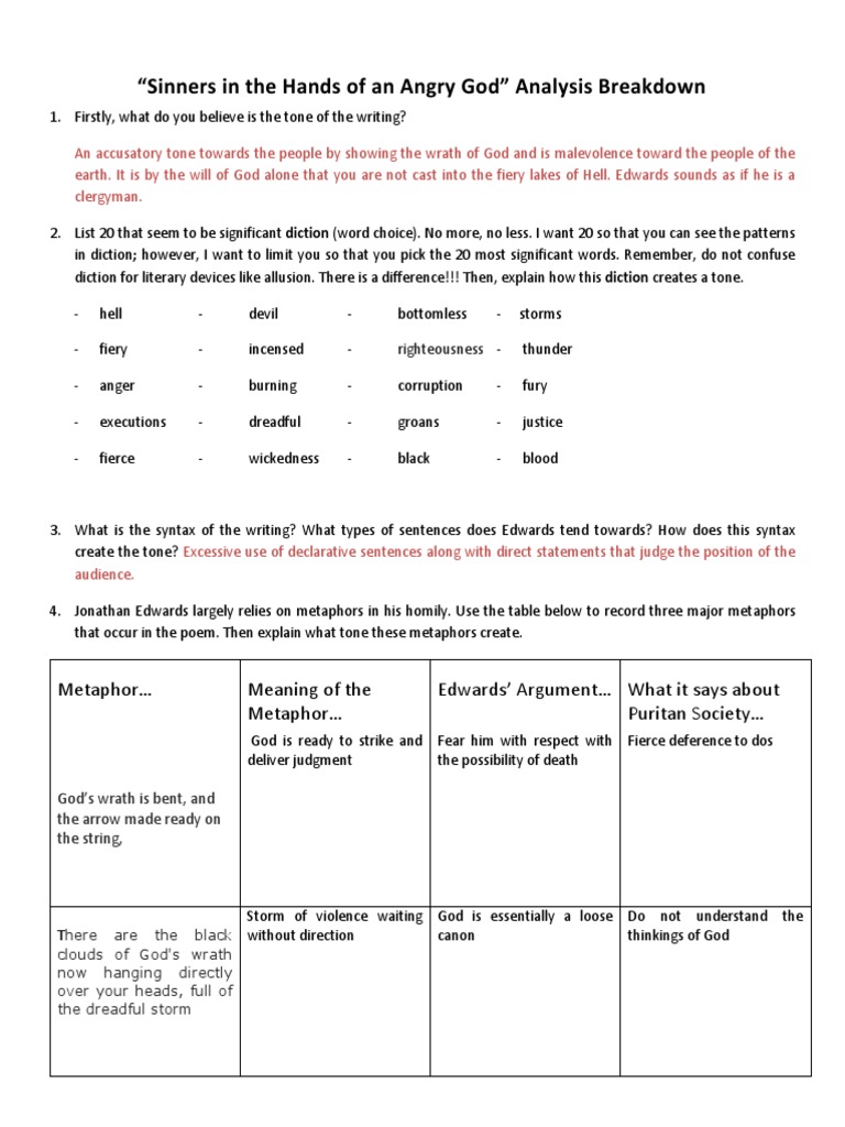 Sinners In The Hands Of An Angry God Analysis Questions Pdf Anger Religious Belief And Doctrine